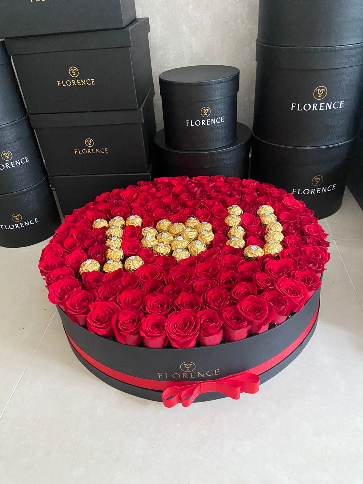 🌹 Magnitude incomparável – A imponente composição contém entre 60 e 70 rosas Colombianas selecionadas individualmente para garantir beleza e frescor inigualáveis e aproximadamente 35 bombons Ferrero Rocher